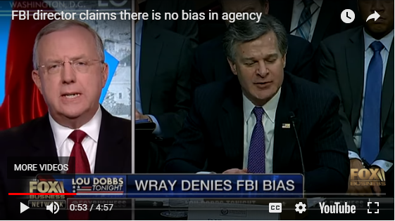 Last night, JW Director of Investigations & Research Chris Farrell appeared on “Lou Dobbs Tonight” on the Fox Business Network to discuss FBI director Christopher Wray’s claim to the Senate Intelligence Committee that there is no bias at the FBI.